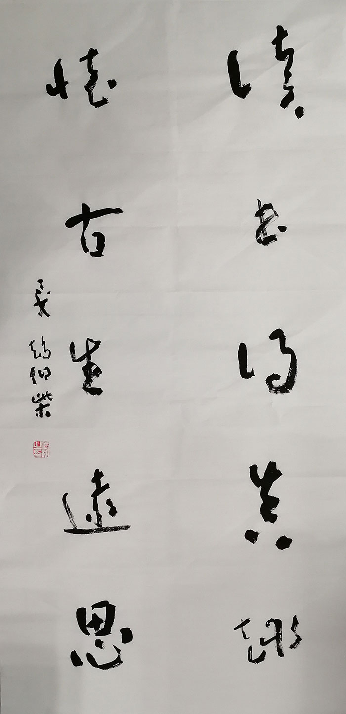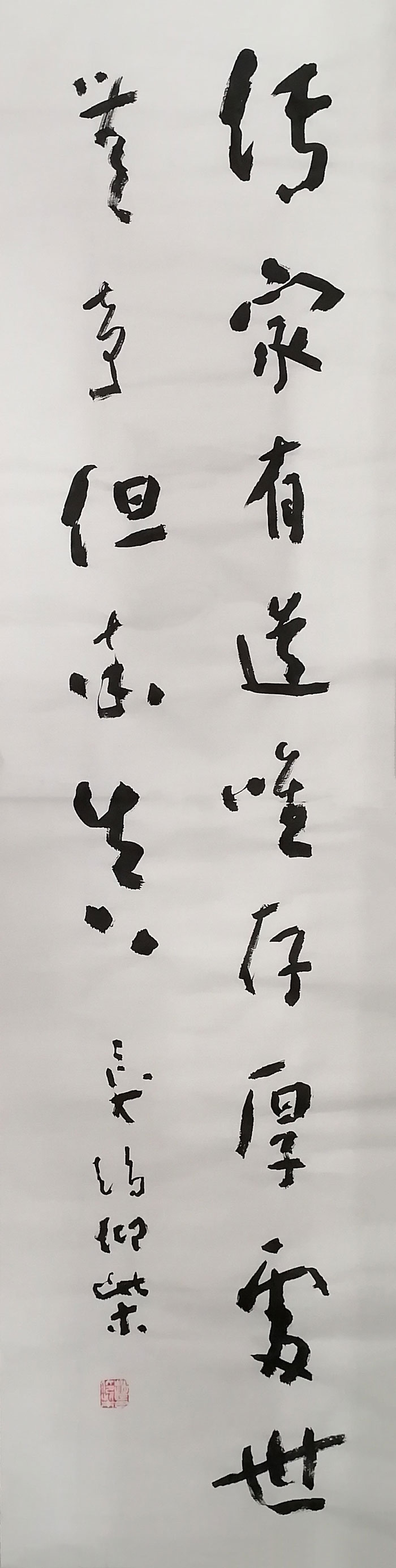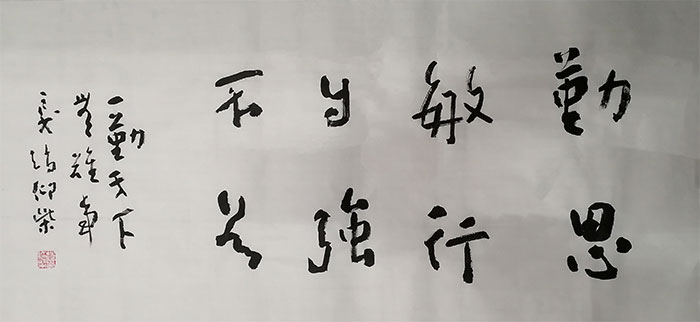在他看来,书法的长河,是在一笔一划的承接中缓缓流淌向前的。传统是根,创新是叶,二者同样重要。因此,他的字里既有从古帖中化来的风骨与法度,又透着自己对当下的理解和性情的流露,形成了一种厚重而不失灵动的风貌。